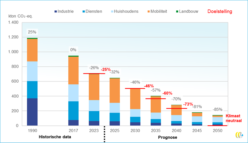 Voor de gemeente Arnhem hebben we met het CEGEM-model een prognose gemaakt van de broeikasgasemissies tot en met 2050. Daarnaast geven we advies over passende tussendoelen en mogelijke aanvullende beleidsmaatregelen. Op basis van het huidige Europese, landelijke en gemeentelijke beleid behaalt de gemeente Arnhem 46% emissiereductie in 2030 ten opzichte van 2017. Het huidige doel van 61% reductie in 2030 blijkt niet haalbaar te zijn. Omdat er te weinig tijd is om nog grote maatregelen te nemen voor 2030, adviseren wij om het 2030-doel bij te stellen van 61 naar 46%. Voor de periode 2030-2050 adviseren we een lineaire afname naar nul te hanteren, met tussendoelen van 60% in 2035 en 73% in 2040 ten opzichte van 2017. Deze doelen zijn haalbaar door in de gebouwde omgeving geleidelijk aardgas te vervangen door een emissievrij alternatief.